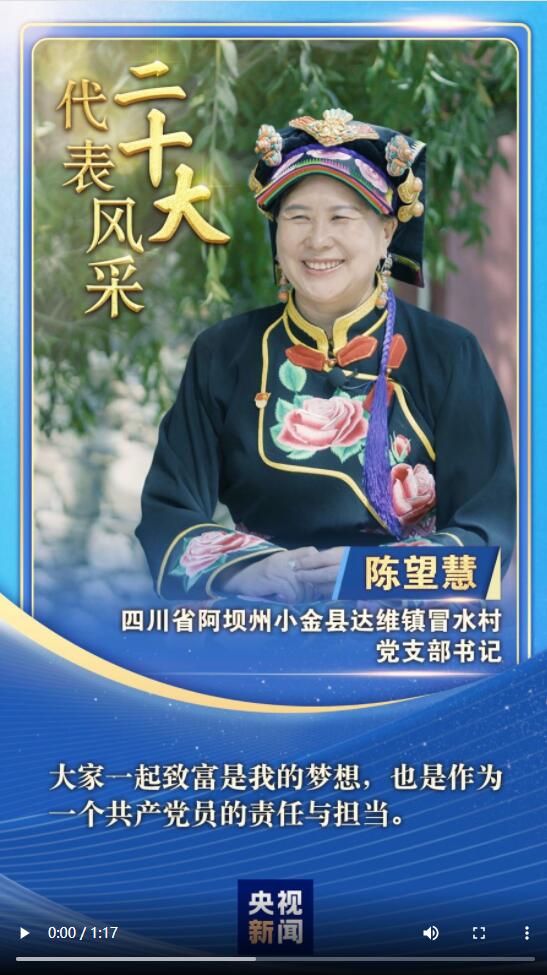 “二十大代表風(fēng)采”一起來(lái)認(rèn)識(shí)四川省阿壩州小金縣達(dá)維鎮(zhèn)冒水村黨支部書記陳望慧。