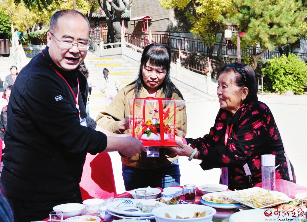 志愿者為老人送上“重陽糕” 老人們首先來到忻州古城東城門下,換乘觀光車環(huán)繞古城游覽,并觀看了大型情景劇《遇見秀容》。聽著演員們的生動講述,一個個老故事勾起了大家對往昔崢嶸歲月的回憶和對現(xiàn)在和平生活來之不易的感嘆。隨后,老人們來到了云中河景區(qū)冰雪運(yùn)動中心、房車營地,寬敞整潔的道路,漂亮的景觀,怡人的休閑娛樂環(huán)境令老人們贊不絕口,大家為家鄉(xiāng)日新月異的變化而感到自豪與欣慰。在貂蟬故里文化園,老人們一邊品嘗家鄉(xiāng)特色美食,一邊觀看北路梆子一團(tuán)的助興演出。志愿者們還準(zhǔn)備了“重陽糕”邀請大家一同品嘗,一起分享甜蜜、歡樂和福氣,給整場活動帶來了濃濃的節(jié)日氛圍,老人們的臉上也洋溢起了幸福的笑容。