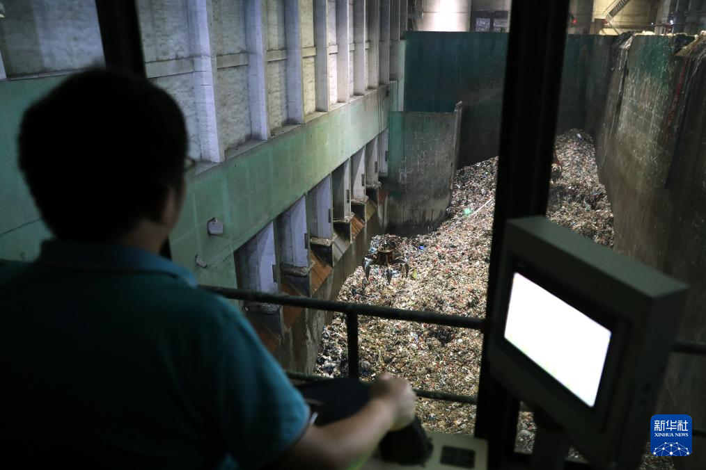 6月29日,在江西南昌固廢處理循環(huán)經(jīng)濟(jì)產(chǎn)業(yè)園,生活垃圾焚燒發(fā)電項(xiàng)目的工作人員通過操控垃圾吊移動(dòng)垃圾。新華社記者 杜瀟逸 攝