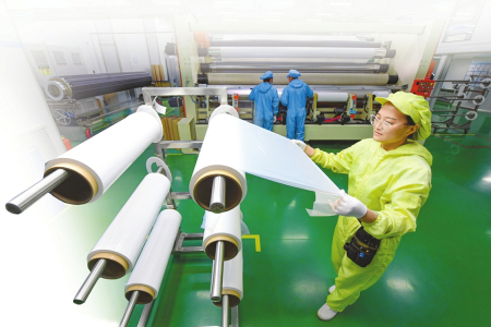 “只有這樣的構(gòu)造才能在隔絕電池正負(fù)極的情況下,還能保證鋰離子從中間自由通過(guò)??墒?,想在‘塑料布’上打出這種小孔可不容易?!倍跑S剛介紹,當(dāng)下無(wú)論是手機(jī)、電腦,還是新能源汽車(chē),鋰電池早已與我們的生活息息相關(guān)。但由于鋰電池隔膜科技含量高,制造過(guò)程涉及多個(gè)學(xué)科,幾年前國(guó)內(nèi)的生產(chǎn)工藝、產(chǎn)品性能、產(chǎn)業(yè)鏈完整度都很低,隔膜等關(guān)鍵材料長(zhǎng)期被外資壟斷。