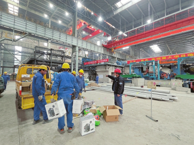一個個待組裝的設備整齊排列,一輛輛工程車來回穿梭作業(yè)……走進宏達集團年產(chǎn)100萬噸薄帶鑄軋項目工地,機器轟鳴,焊花飛濺,數(shù)百名工人分布在鋼架“叢林”間進行鑄機、軋機等設備的安裝,不遠處,“爭分奪秒搶工期,一絲不茍創(chuàng)精品”的橫幅格外醒目。