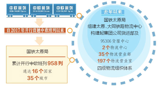 “自2017年開行首趟中歐班列以來,國鐵太原局累計開行的中歐班列已有958列,通達(dá)16個國家、35個城市?!眹F太原局貨運(yùn)部科長田源介紹,“中歐班列已經(jīng)成為不沿海、不沿邊的山西省對外開放重要平臺?!?/p>