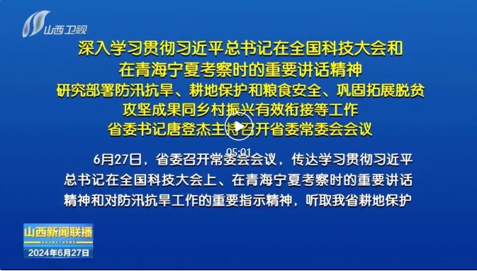 山西日報(bào)報(bào)道6月27日,省委召開常委會會議,傳達(dá)學(xué)習(xí)貫徹習(xí)近平總書記在全國科技大會上、在青海寧夏考察時(shí)的重要講話精神和對防汛抗旱工作的重要指示精神,聽取我省耕地保護(hù)和糧食安全責(zé)任制工作落實(shí)、2023年度市縣黨委和政府鞏固拓展脫貧攻堅(jiān)成果同鄉(xiāng)村振興有效銜接考核情況匯報(bào),審議通過《山西省2023年度國家鞏固拓展脫貧攻堅(jiān)成果同鄉(xiāng)村振興有效銜接考核評估反饋問題整改工作方案》。省委書記唐登杰主持會議。