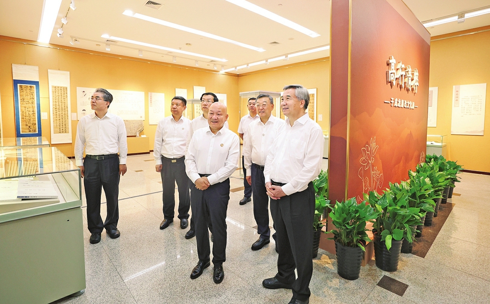 7月2日至5日,中共中央政治局常委、中央紀(jì)委書(shū)記李希到山西調(diào)研。這是7月5日,李希在山西博物院,參觀“于成龍廉政文化展”。新華社記者丁海濤攝