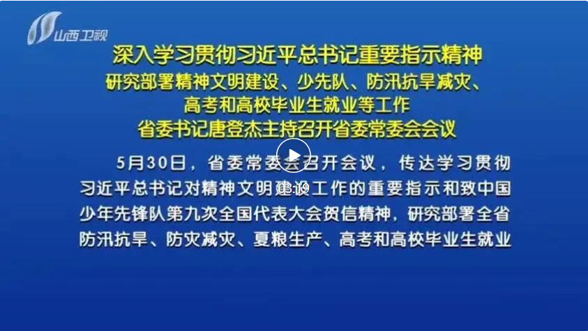 5月30日,省委常委會(huì)召開會(huì)議,傳達(dá)學(xué)習(xí)貫徹習(xí)近平總書記對精神文明建設(shè)工作的重要指示和致中國少年先鋒隊(duì)第九次全國代表大會(huì)賀信精神,研究部署全省防汛抗旱、防災(zāi)減災(zāi)、夏糧生產(chǎn)、高考和高校畢業(yè)生就業(yè)等工作。省委書記唐登杰主持會(huì)議。