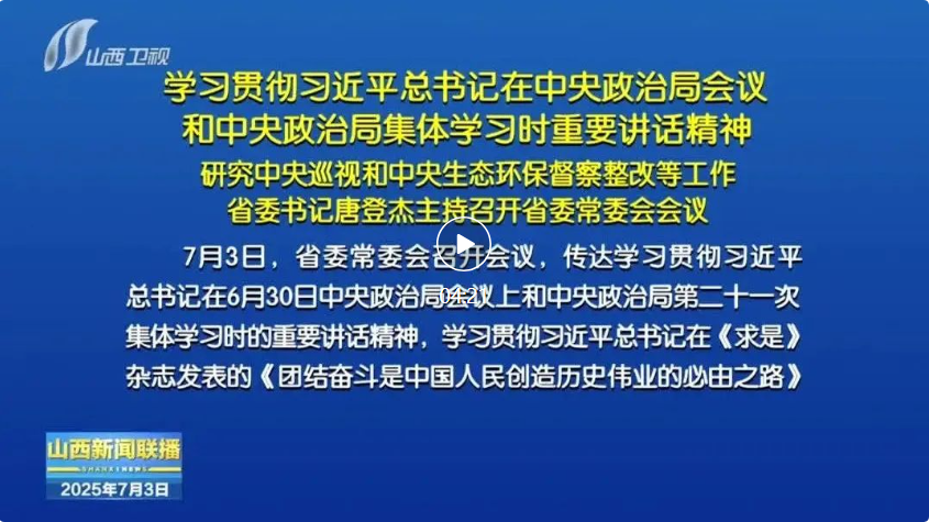 7月3日,省委常委會召開會議,傳達學習貫徹習近平總書記在6月30日中央政治局會議上和中央政治局第二十一次集體學習時的重要講話精神,學習貫徹習近平總書記在《求是》雜志發(fā)表的《團結(jié)奮斗是中國人民創(chuàng)造歷史偉業(yè)的必由之路》重要文章,傳達貫徹張國清同志在晉調(diào)研指示精神,聽取中央巡視邊巡邊改、中央生態(tài)環(huán)保督察邊督邊改工作情況匯報,研究部署下一步工作。省委書記唐登杰主持會議。