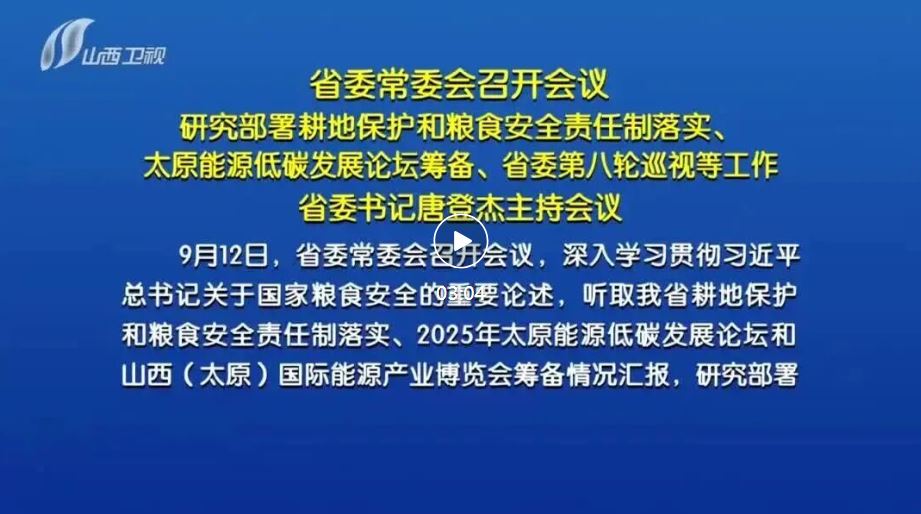 9月12日,省委常委會召開會議,深入學(xué)習(xí)貫徹習(xí)近平總書記關(guān)于國家糧食安全的重要論述,聽取我省耕地保護(hù)和糧食安全責(zé)任制落實(shí)、2025年太原能源低碳發(fā)展論壇和山西(太原)國際能源產(chǎn)業(yè)博覽會籌備情況匯報(bào),研究部署十二屆省委第八輪巡視工作。省委書記唐登杰主持會議。