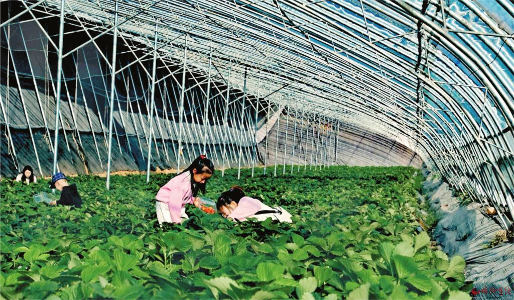 游客在大棚采摘草莓 趙文君攝