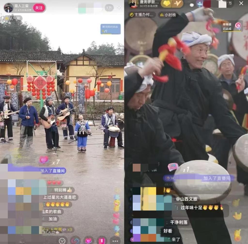 湖南省鳳凰縣臘爾山鎮(zhèn)苗寨中,4個(gè)“90后”苗族小伙組成樂(lè)隊(duì)自辦“村晚”,規(guī)模不大,唱火家鄉(xiāng);山西臨汾的村民們用簸箕、黃豆當(dāng)樂(lè)器,配合嗩吶和非遺晉南威風(fēng)鑼鼓,直播連線(xiàn)上千公里外的苗鄉(xiāng),南北大聯(lián)歡釋放獨(dú)特的精彩,吸引在線(xiàn)觀(guān)眾近800萬(wàn)人……