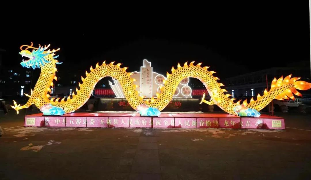 晉中市太谷區(qū)金谷廣場(chǎng)上的“龍生九子”燈展