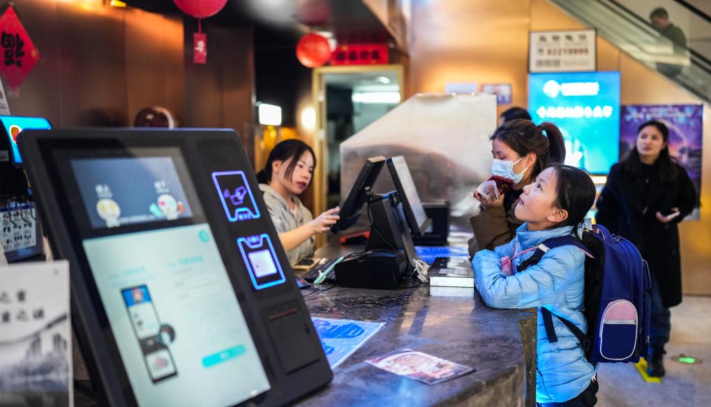 2月18日,小朋友在貴陽(yáng)市云巖區(qū)益田國(guó)際影城選購(gòu)電影票。新華社記者 陶亮 攝
