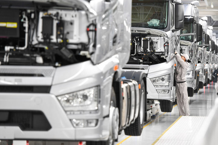 2024年2月19日,工人在位于吉林省長(zhǎng)春市的一汽解放J7整車智能工廠裝配車輛。新華社記者 張楠 攝