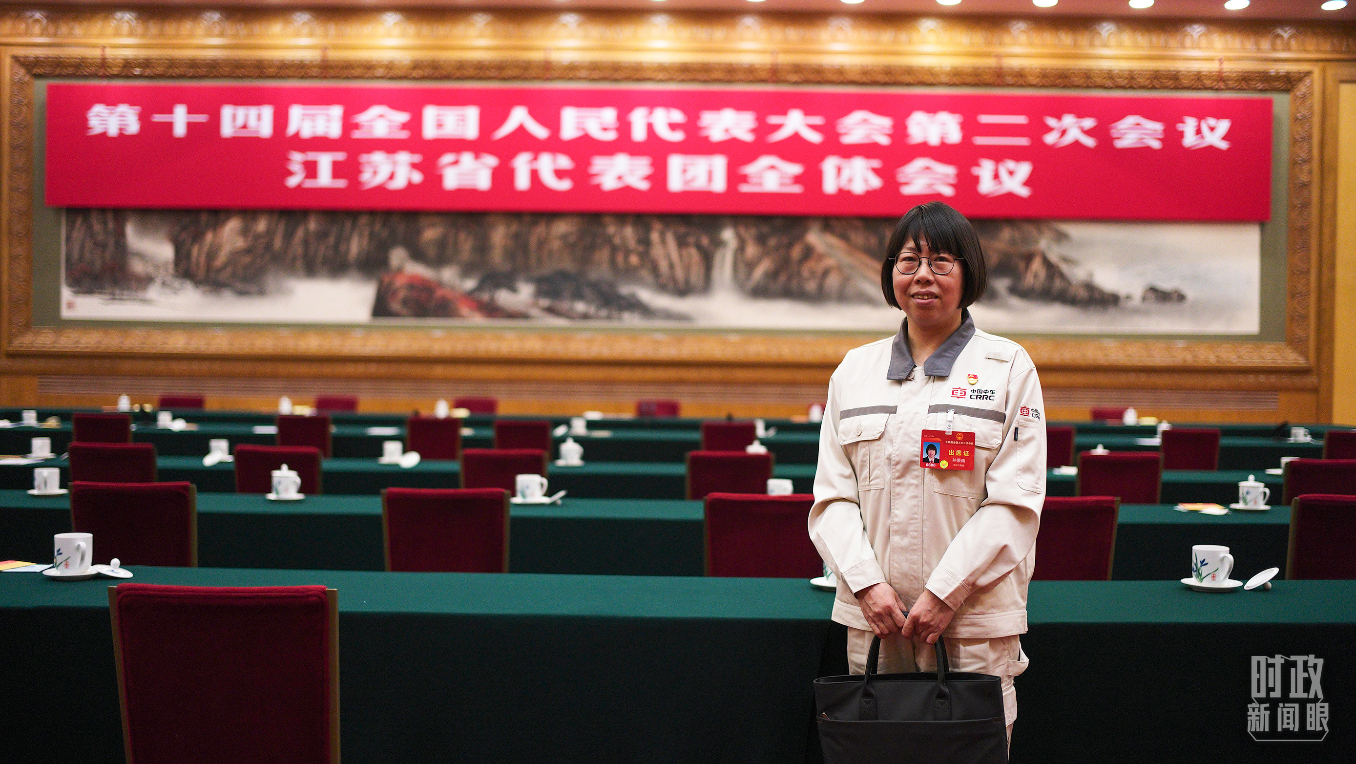 △吳新明代表。(總臺國廣記者李晉拍攝) 當(dāng)天最后發(fā)言的孫景南代表,是中車南京浦鎮(zhèn)車輛有限公司的一名電焊工,有著“東方女焊神”之稱。近年來她帶領(lǐng)團(tuán)隊完成技術(shù)攻關(guān)200多項,創(chuàng)造經(jīng)濟(jì)效益4500多萬元。 孫景南在向總書記匯報“弘揚工匠精神”這一主題時,特別提到了自己對“匠”字的理解:對專業(yè)技能要斤斤計較一點。 總書記去年在江蘇團(tuán)強調(diào)“兩個必保”,其中一個就是制造業(yè)必須筑牢。孫景南告訴《時政新聞眼》,她今年提交了一份代表建議,內(nèi)容就是進(jìn)一步推動裝備制造業(yè)高質(zhì)量發(fā)展。