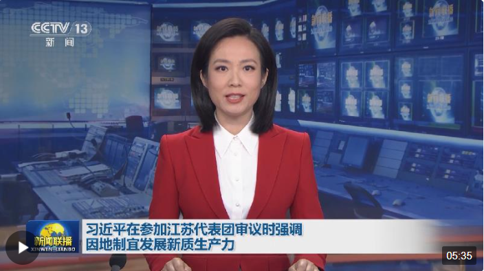 3月5日下午,習(xí)近平總書記參加江蘇代表團(tuán)審議。 去年1月,總書記在江蘇當(dāng)選全國人大代表。去年兩會期間,他首次到團(tuán)組,就是到江蘇代表團(tuán),強調(diào)牢牢把握高質(zhì)量發(fā)展這個首要任務(wù)。 今年這次到江蘇團(tuán),總書記重點談的是因地制宜發(fā)展新質(zhì)生產(chǎn)力。發(fā)展新質(zhì)生產(chǎn)力,為何強調(diào)“因地制宜”?在江蘇團(tuán),總書記還傳遞了哪些重要信息?《時政新聞眼》兩會特刊為你解讀。 01 聽代表心聲 謀發(fā)展大計 黨的十八大以來,習(xí)近平總書記先后5次到江蘇考察,去年就去了兩趟。黨的十八大后召開的首次全國兩會上,總書記就曾到江蘇團(tuán)參加審議。加上今年這一次,已是他第三次參加江蘇代表團(tuán)審議。 去年7月到江蘇考察時,總書記說,“江蘇一直是我的關(guān)注點、調(diào)研點和研究點?!薄拔覍@里的關(guān)注,始終是進(jìn)行時?!?/p>