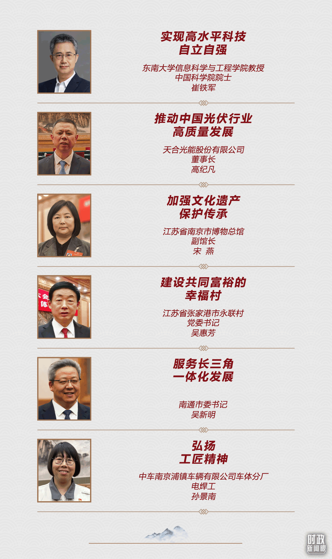 △江蘇代表團(tuán)審議現(xiàn)場氣氛熱烈。 在2024年春節(jié)團(tuán)拜會上,習(xí)近平總書記發(fā)出召喚:“甲辰龍年,希望全國人民振奮龍馬精神,以龍騰虎躍、魚躍龍門的干勁闖勁,開拓創(chuàng)新、拼搏奉獻(xiàn),共同書寫中國式現(xiàn)代化建設(shè)新篇章。” 3月5日,恰逢驚蟄。一年春作首,萬事行為先。從“因地制宜發(fā)展新質(zhì)生產(chǎn)力”,到“黨員干部首先要堅定信心、真抓實干”,貫徹落實總書記在江蘇代表團(tuán)作出的這些重要部署,都需要我們拿出行動來。