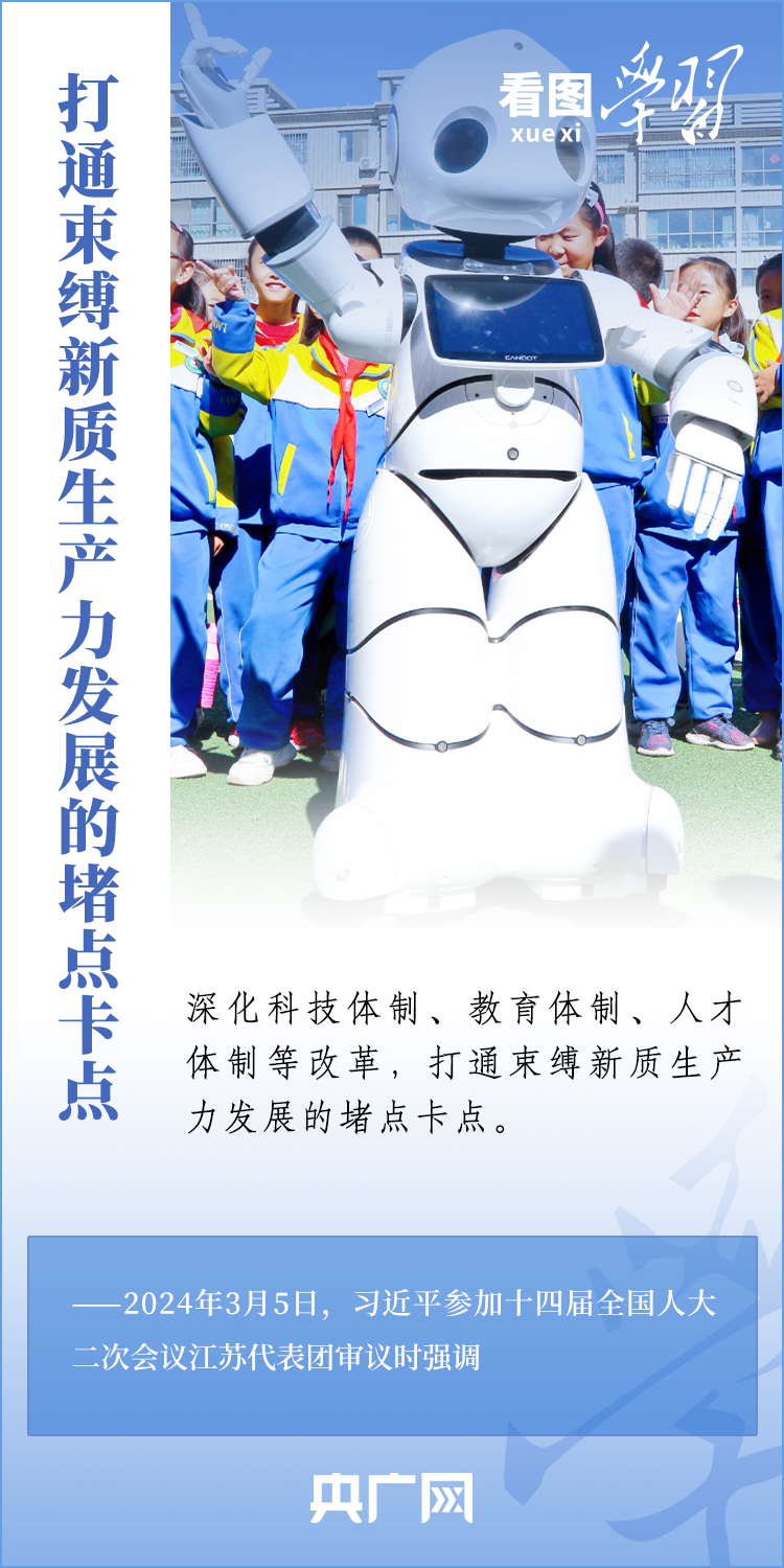 3月5日,十四屆全國人大二次會議正式開幕。5日下午,習近平總書記參加他所在的江蘇代表團審議時強調,要牢牢把握高質量發(fā)展這個首要任務,因地制宜發(fā)展新質生產力。發(fā)展新質生產力不是忽視、放棄傳統(tǒng)產業(yè),要防止一哄而上、泡沫化,也不要搞一種模式。一起來學習!