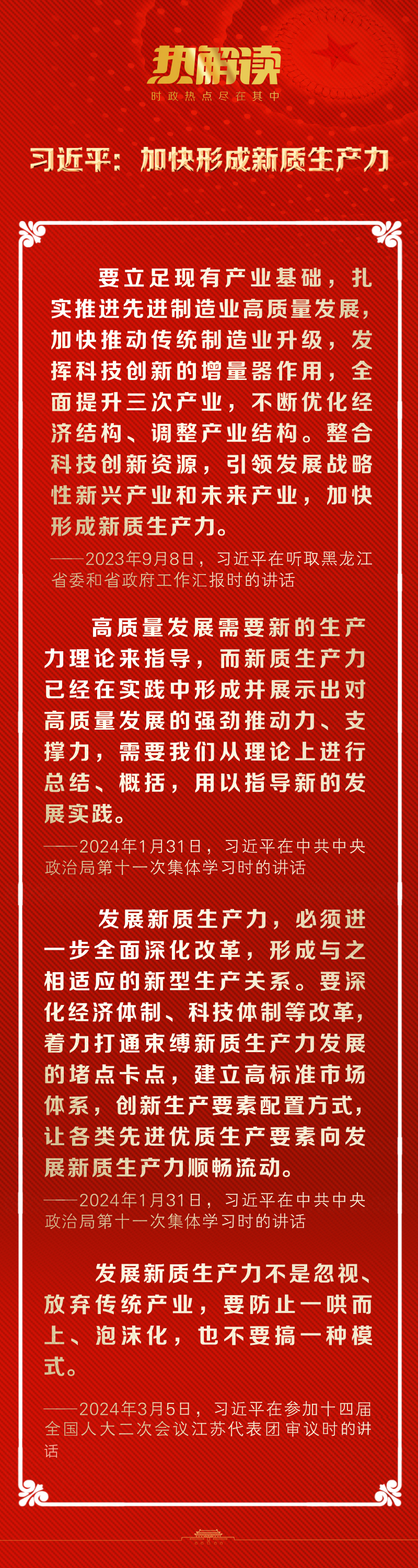 從2023年底召開的中央經(jīng)濟(jì)工作會(huì)議要求發(fā)展新質(zhì)生產(chǎn)力,到今年中央政治局首次集體學(xué)習(xí)時(shí)聚焦“新質(zhì)生產(chǎn)力”,再到今年政府工作報(bào)告將加快發(fā)展新質(zhì)生產(chǎn)力列為2024年十大工作任務(wù)之首,一系列重要安排部署釋放出鮮明信號(hào),即發(fā)展新質(zhì)生產(chǎn)力重要且迫切。