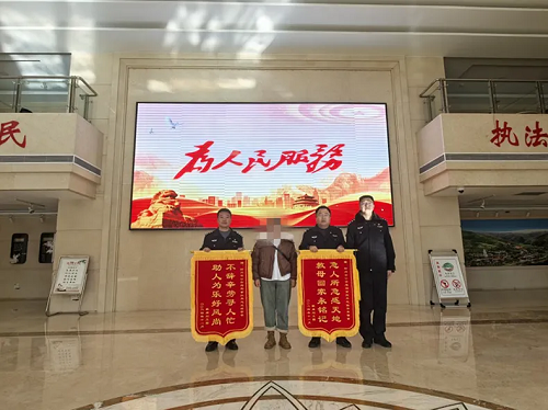 12月9日,老人的女兒來(lái)到忻州市公安局,向民警鄭重地送上錦旗,緊緊握住民警的手,滿含感激地說(shuō) “謝謝,謝謝!實(shí)在是不知該怎么感謝你!為你們做了兩面錦旗!”