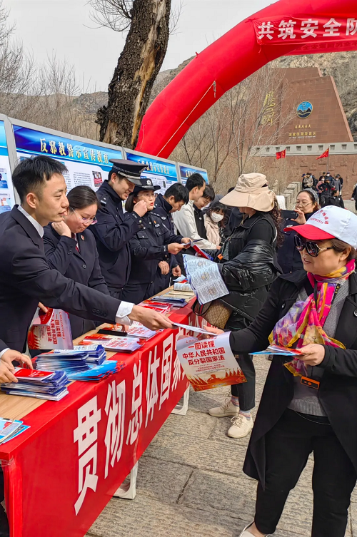 在第10個(gè)全民國(guó)家安全教育日到來(lái)前,為深入貫徹總體國(guó)家安全觀(guān),增強(qiáng)全民國(guó)家安全法治意識(shí)。4月8日,代縣人民檢察院在縣委政法委的統(tǒng)一組織下前往代縣雁門(mén)關(guān)風(fēng)景區(qū)開(kāi)展“全民國(guó)家安全教育 走深走實(shí)十周年”普法宣傳活動(dòng)。