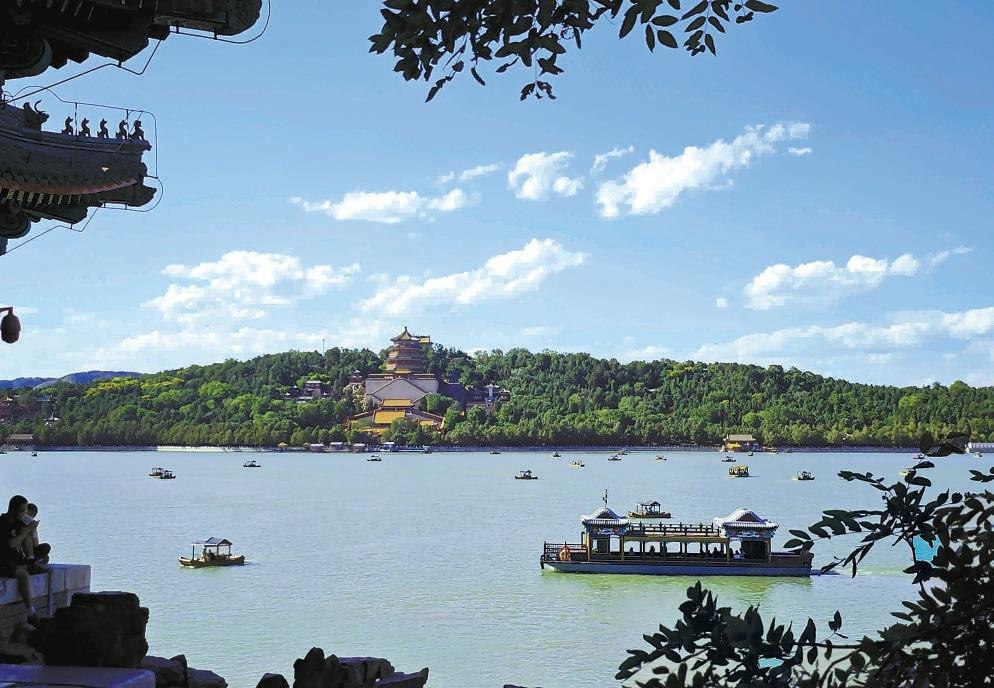 △2023年北京空氣質(zhì)量優(yōu)良天數(shù)達271天,較2013年增加95天,全市生態(tài)環(huán)境質(zhì)量改善成效持續(xù)鞏固。圖為北京頤和園。