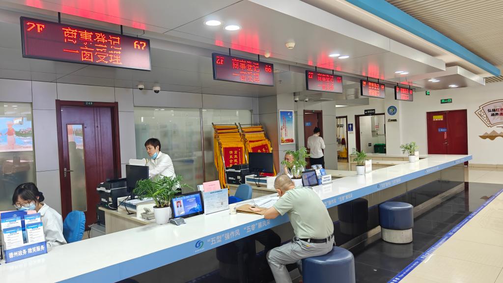在德州市政務(wù)服務(wù)中心,工作人員正在受理企業(yè)登記信息備案變更業(yè)務(wù)。新華社記者蕭海川 攝