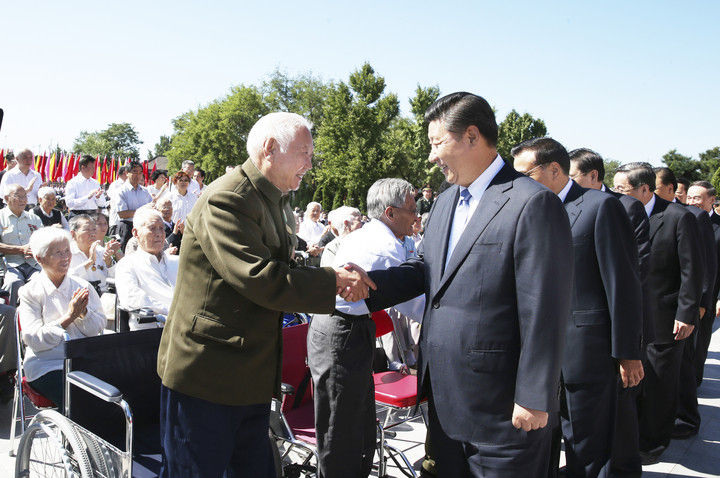 2014年9月3日上午,習(xí)近平與抗戰(zhàn)老戰(zhàn)士和老同志、抗戰(zhàn)烈士親屬、為抗戰(zhàn)勝利作出貢獻(xiàn)的國際友人遺屬代表親切會(huì)面。