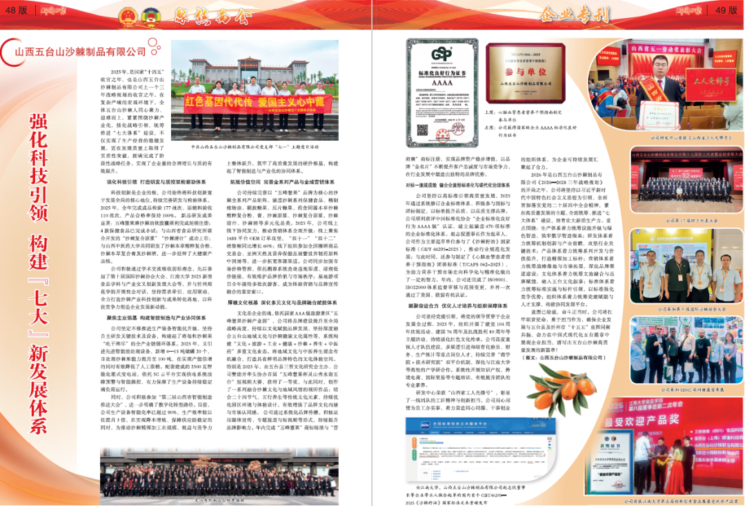 2025年,是國家“十四五”收官之年,也是山西五臺山沙棘制品有限公司上一個三年戰(zhàn)略規(guī)劃的收官之年。在復(fù)雜嚴(yán)峻的宏觀環(huán)境下,全體五臺山沙棘人同心聚力、迎難而上,緊緊圍繞沙棘產(chǎn)業(yè)化,強(qiáng)化戰(zhàn)略引領(lǐng),統(tǒng)籌推進(jìn)“七大體系”建設(shè),不僅實(shí)現(xiàn)了生產(chǎn)經(jīng)營的穩(wěn)健發(fā)展,更在發(fā)展質(zhì)量上取得了實(shí)質(zhì)性突破,圓滿完成了階段性戰(zhàn)略任務(wù),實(shí)現(xiàn)了企業(yè)量的合理增長與質(zhì)的有效提升。
